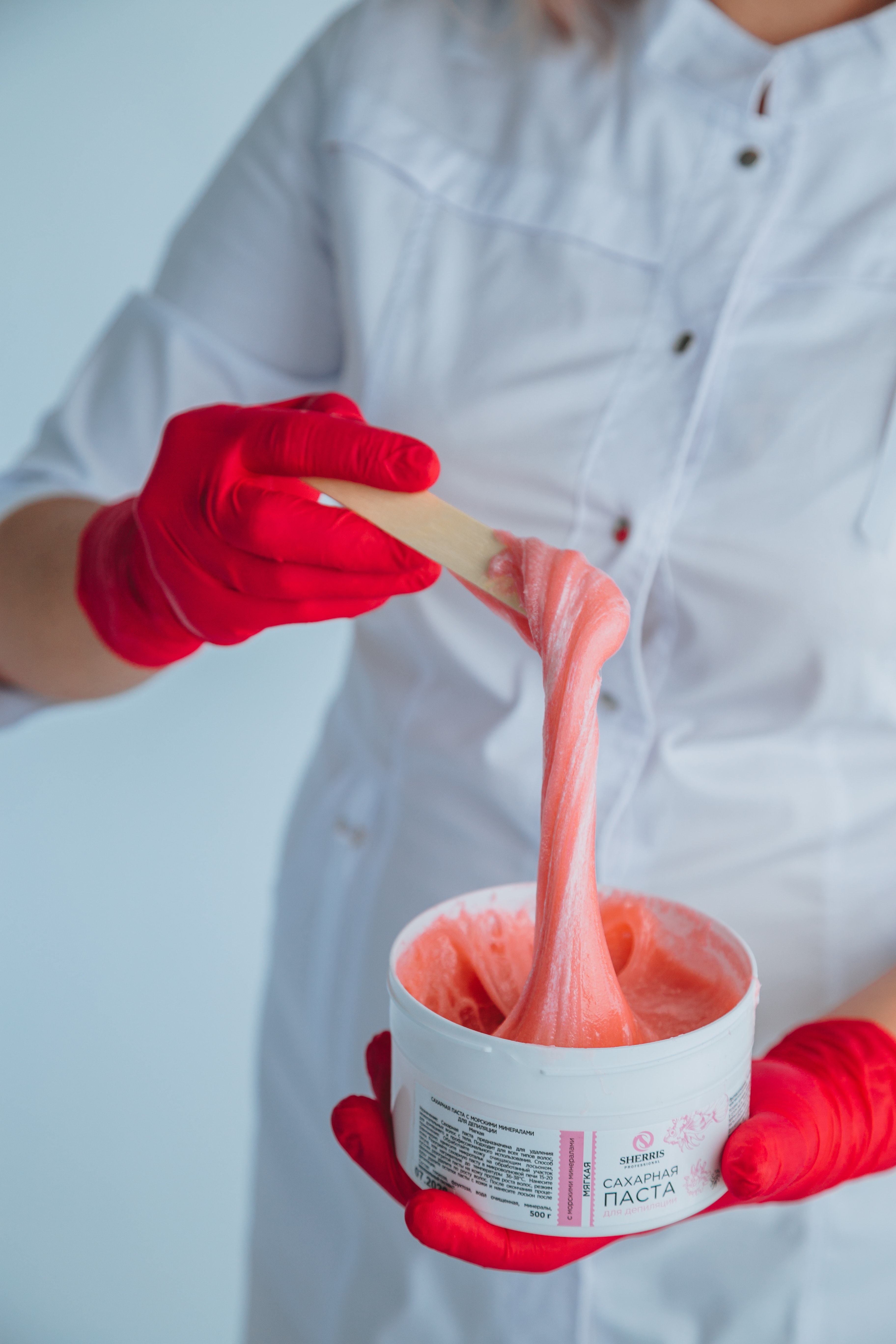 Os pelos são removidos com cera quente de mel.